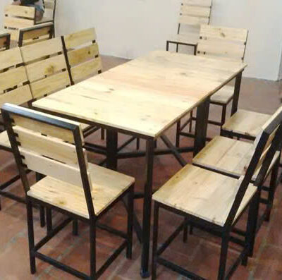 Bàn ghế gỗ chân sắt quán ăn (Mẫu 6)